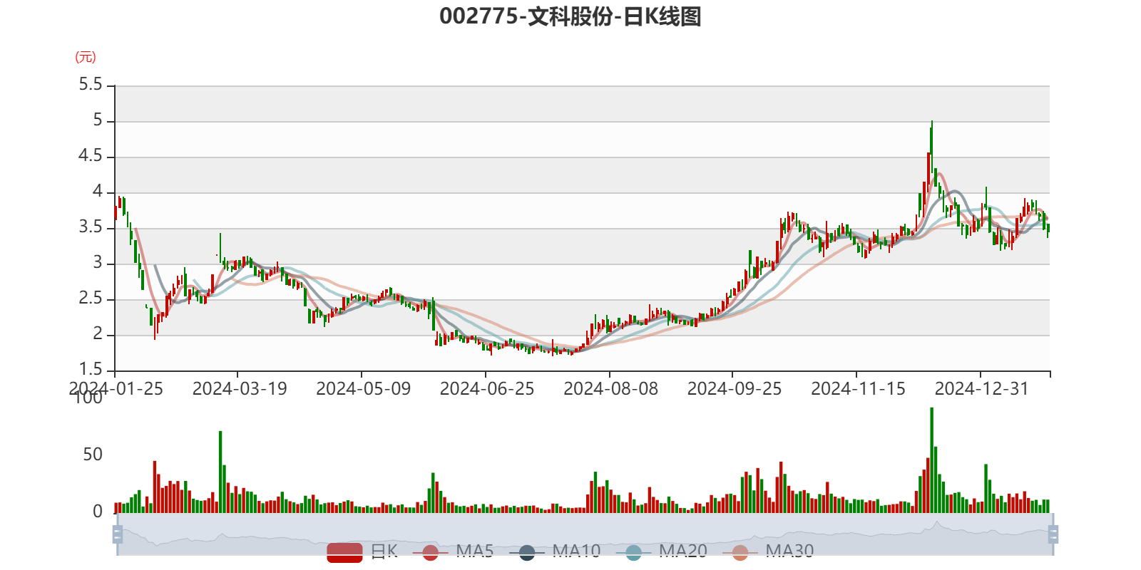 中证智能财讯文科股份(002775)1月24日晚间披露2024年度业绩预告,预计2024年归母净利润亏损3500万元至5250万元,上年同期亏损1.49亿元;扣非净利润亏损9500万元至1.13亿元,上年同期亏损1.84亿元;基本每股收益-0.09元/股至-0.16元/股。以1月24日收盘价计算,文科股份目前市盈率(TTM)约为-39.65倍至-59.47倍,市净率(LF)约9.45倍,市销率(TTM)约2.89倍。