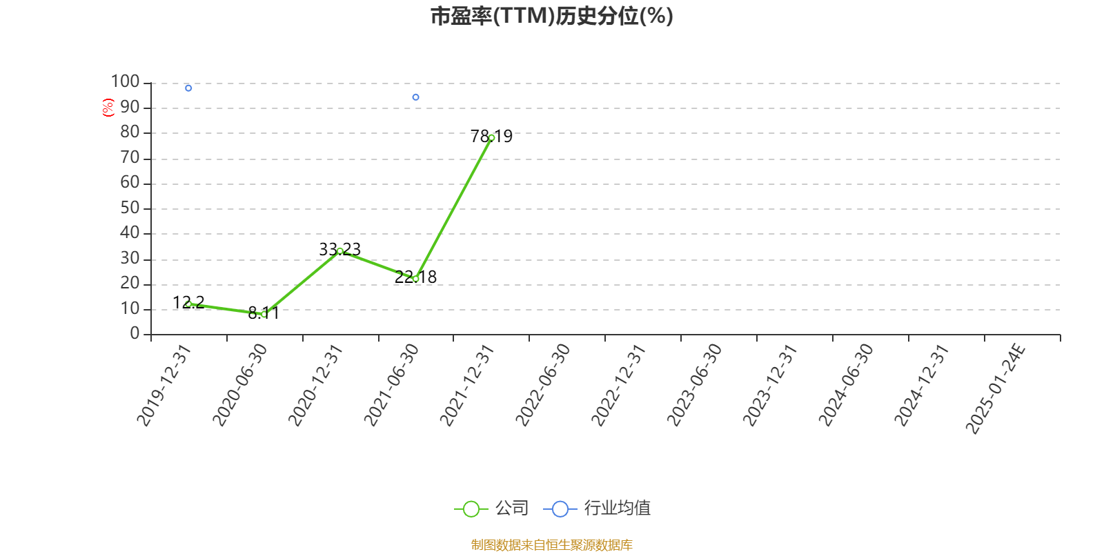 以本次披露业绩预告均值计算,公司近年市盈率(TTM)图如下所示: