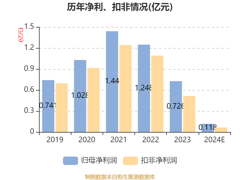 中证智能财讯泰坦科技(688133)1月24日晚间披露2024年度业绩预告,预计2024年归母净利润950万元至1400万元,同比下降80.71%-86.91%;扣非净利润预计520万元-780万元,同比下降84.82%-89.88%。以1月24日收盘价计算,泰坦科技目前市盈率(TTM)约为223.16倍-328.87倍,市净率(LF)约1.12倍,市销率(TTM)约1.1倍。
