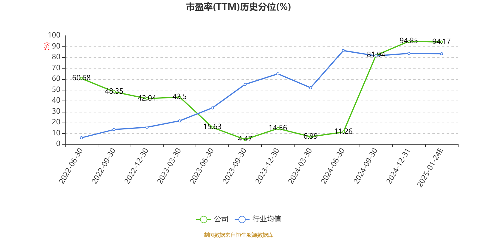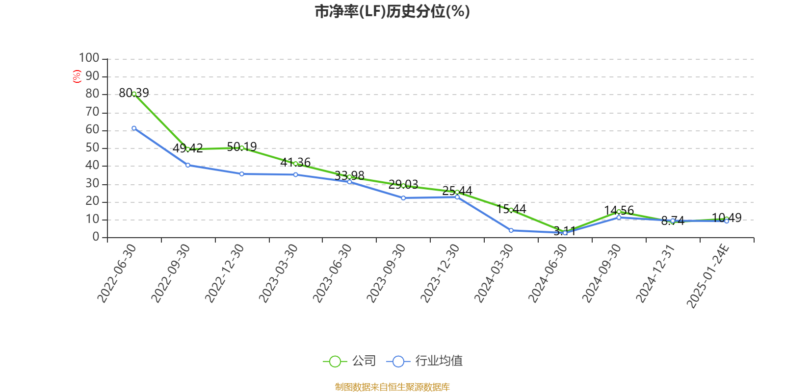 市盈率、市净率为负时,不显示当期分位数,会导致折线图中断。