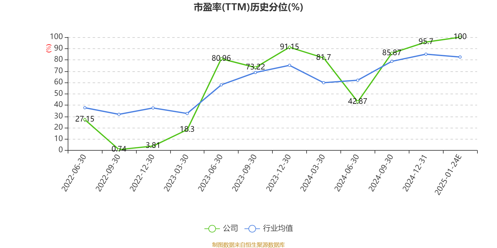 市盈率、市净率为负时,不显示当期分位数,会导致折线图中断。