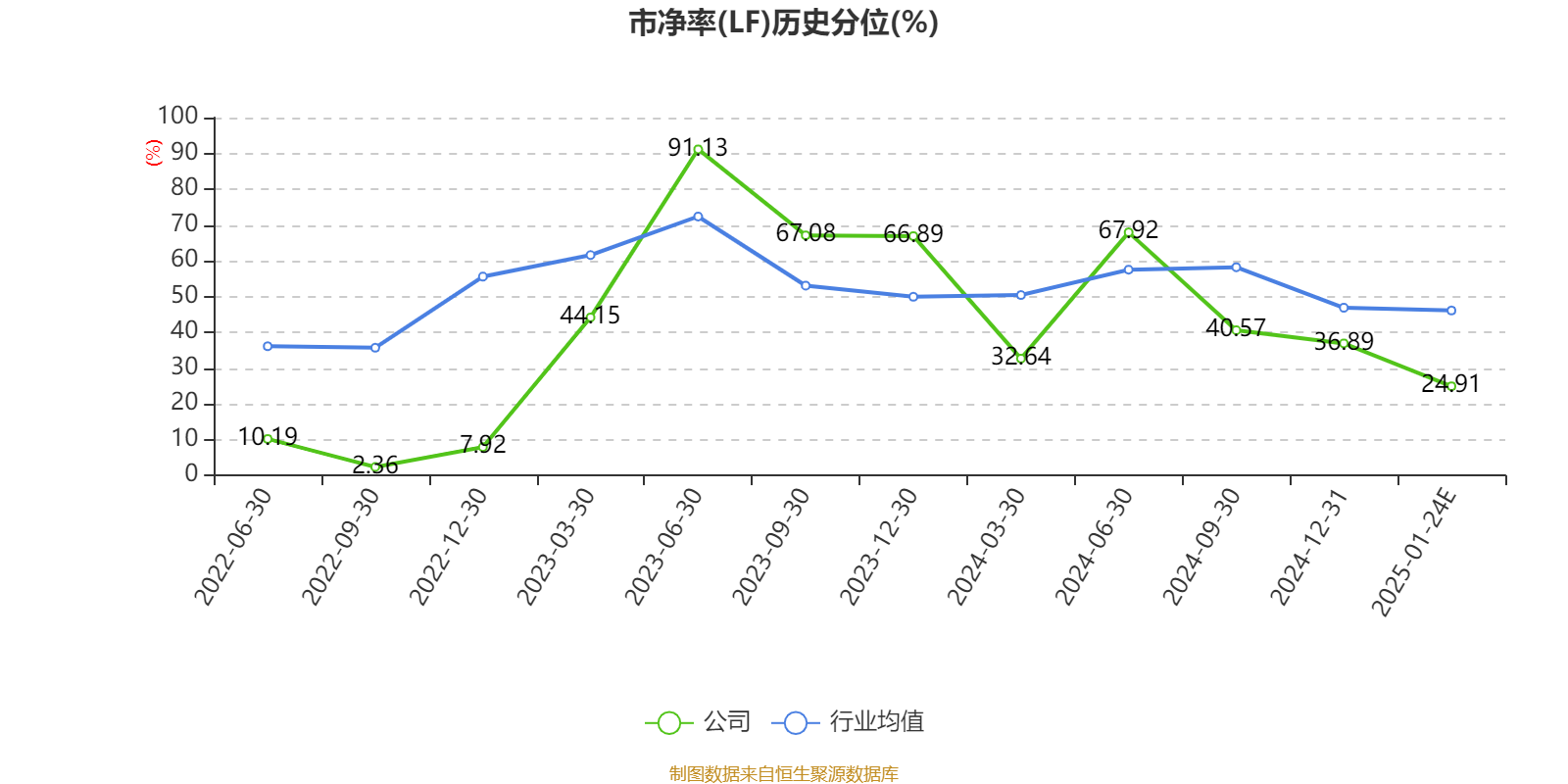 市盈率、市净率为负时,不显示当期分位数,会导致折线图中断。