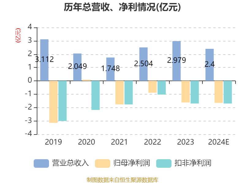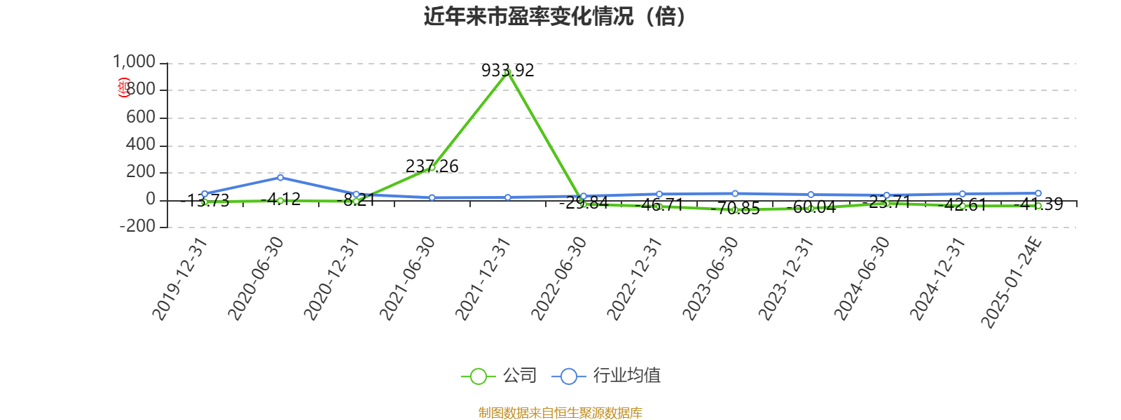 中证智能财讯宝塔实业(000595)1月24日晚间披露2024年度业绩预告,预计2024年实现营业收入2.3亿元至2.5亿元;归母净利润亏损1.4亿元至1.9亿元,上年同期亏损1.62亿元;扣非净利润亏损1.45亿元至1.95亿元,上年同期亏损1.7亿元;基本每股收益-0.12元/股至-0.17元/股。以1月24日收盘价计算,宝塔实业目前市盈率(TTM)约为-35.12倍至-47.66倍,市净率(LF)约15.71倍,市销率(TTM)约27.8倍。