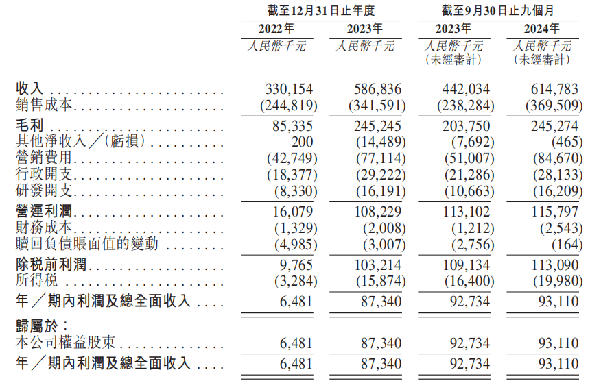 上市前,乐摩的营收呈现飞速增长趋势。2022-2023年以及2024年前三季度,公司营收分别达到3.3亿元、5.9亿元以及6.1亿元。