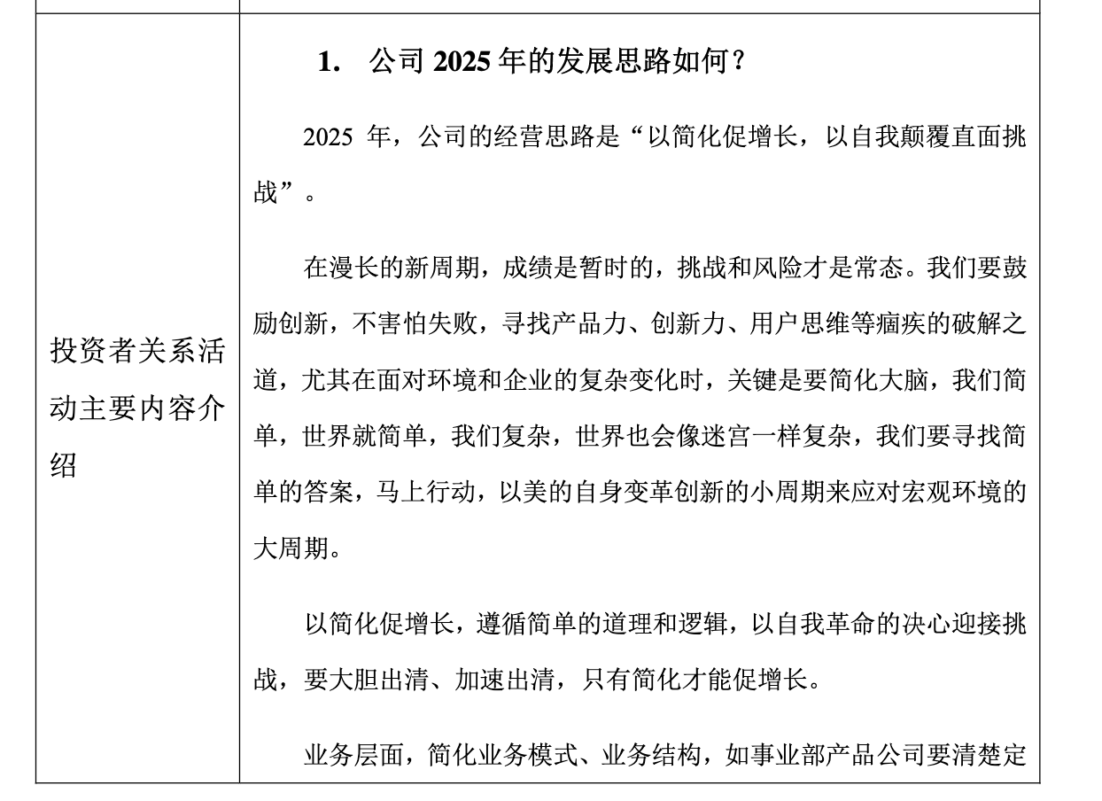 美的集团管理层称,“公司简化业务模式、业务结构,如事业部产品公司要清楚定位、明确分工;出清冗余,品类简化,SKU(最小存货单位)精简,非核心业务关停并转,聚焦核心业务与核心品类,并严控新品类的准入”。而组织管理层面,如海外业务的责任主体要落在国家,由当地负责产品企划,事业部配合。