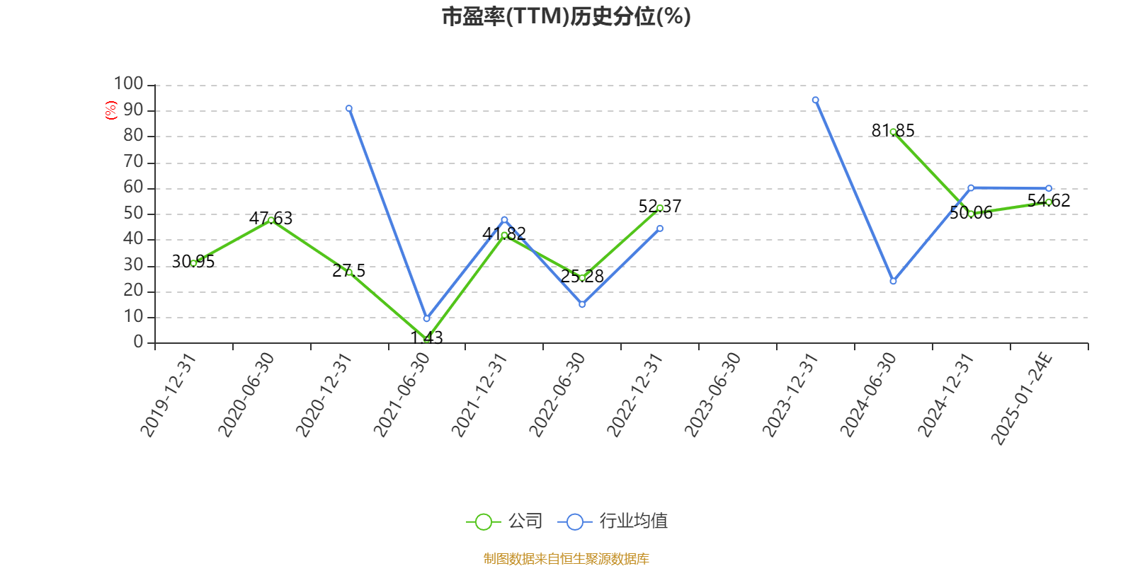 以本次披露业绩预告均值计算,公司近年市盈率(TTM)图如下所示: