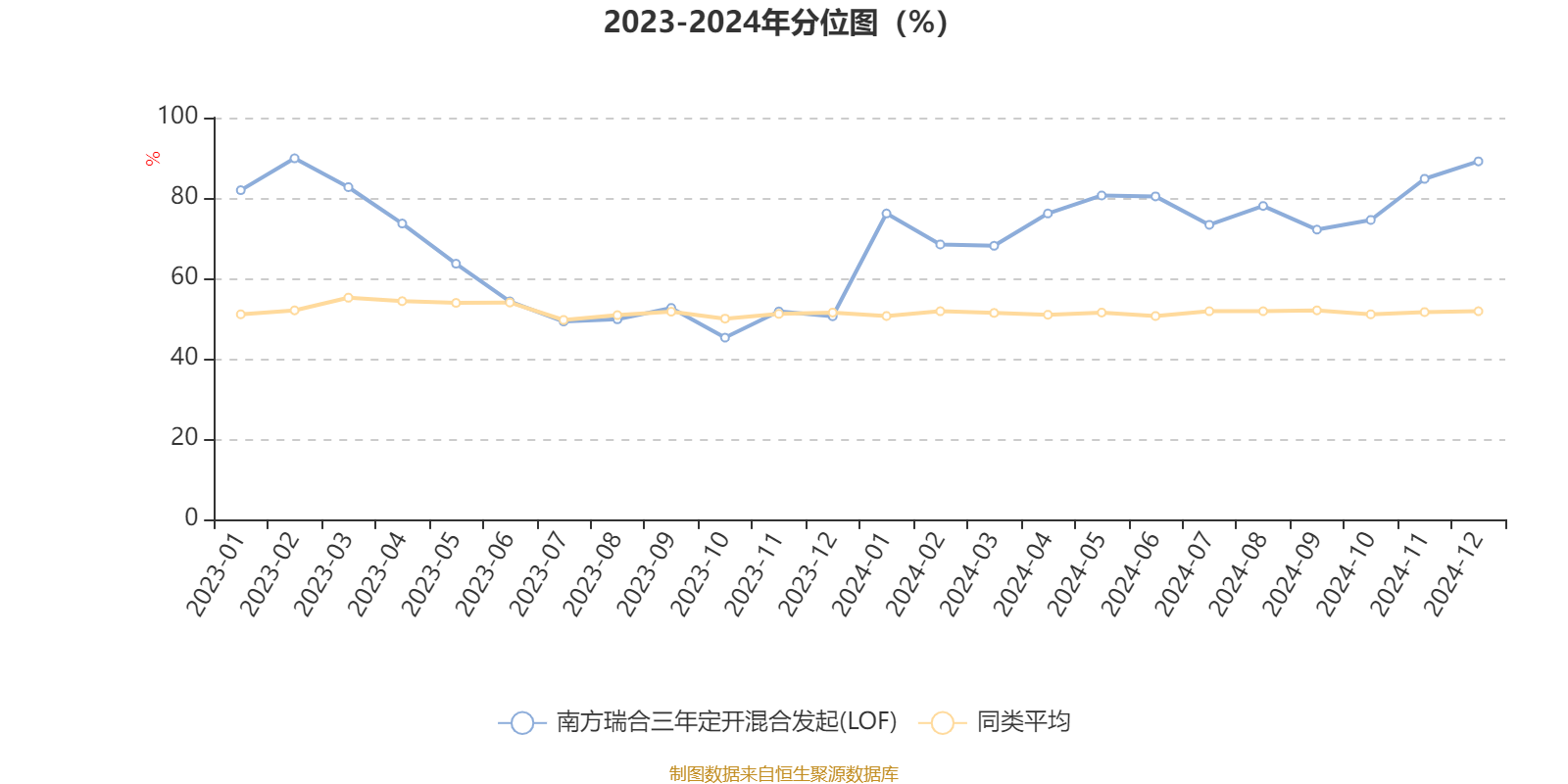 通过所选区间该基金净值增长率分位图,可以观察该基金与同类基金业绩比较情况。图为坐标原点到区间内某时点的净值增长率在同类基金中的分位数。