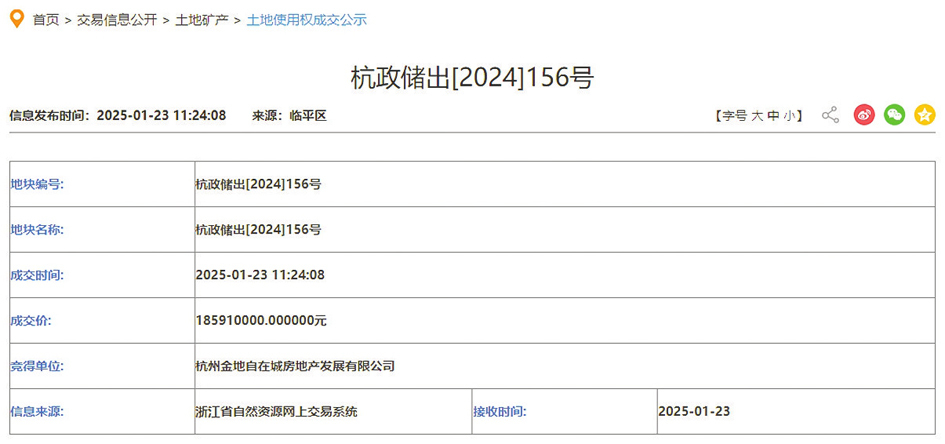 2025年1月,多个核心城市土拍热度显著上升,部分房企表现出较强的拿地意愿。近日,老牌房企金地集团以1.86亿元的总价竞得杭州临平老城区的一宗低密地块,溢价率为31.01%,这是该集团时隔1年半重新回归土拍市场。