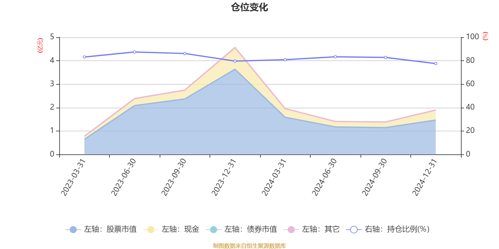 据定期报告数据统计,成立以来平均股票仓位为82.7%,同类平均为84.66%。2023年上半年末基金达到87.5%的最高仓位,2024年末最低,为77.61%。