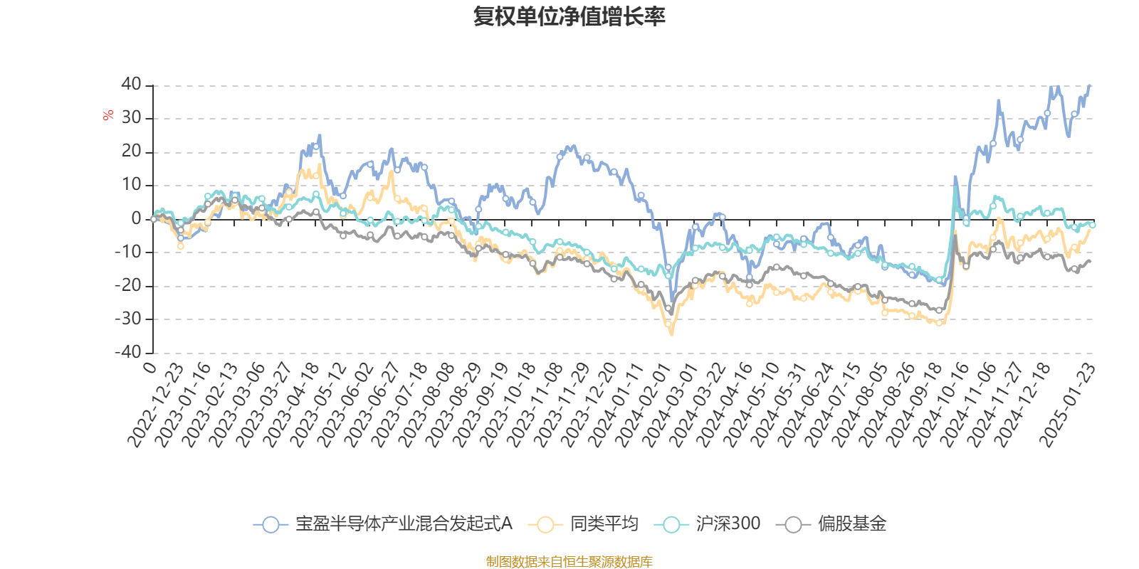 截至1月22日,宝盈半导体产业混合发起式A近三个月复权单位净值增长率为23.24%,位于同类可比基金5/202;近半年复权单位净值增长率为47.95%,位于同类可比基金4/202;近一年复权单位净值增长率为43.77%,位于同类可比基金45/191。