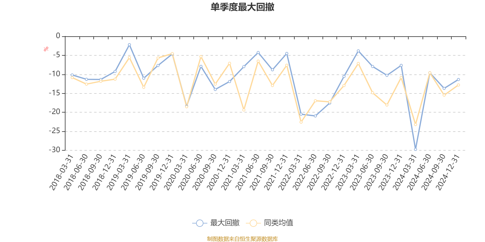 截至1月22日,基金近三年最大回撤为33.73%,同类可比基金排名127/132。单季度最大回撤出现在2024年一季度,为29.79%。