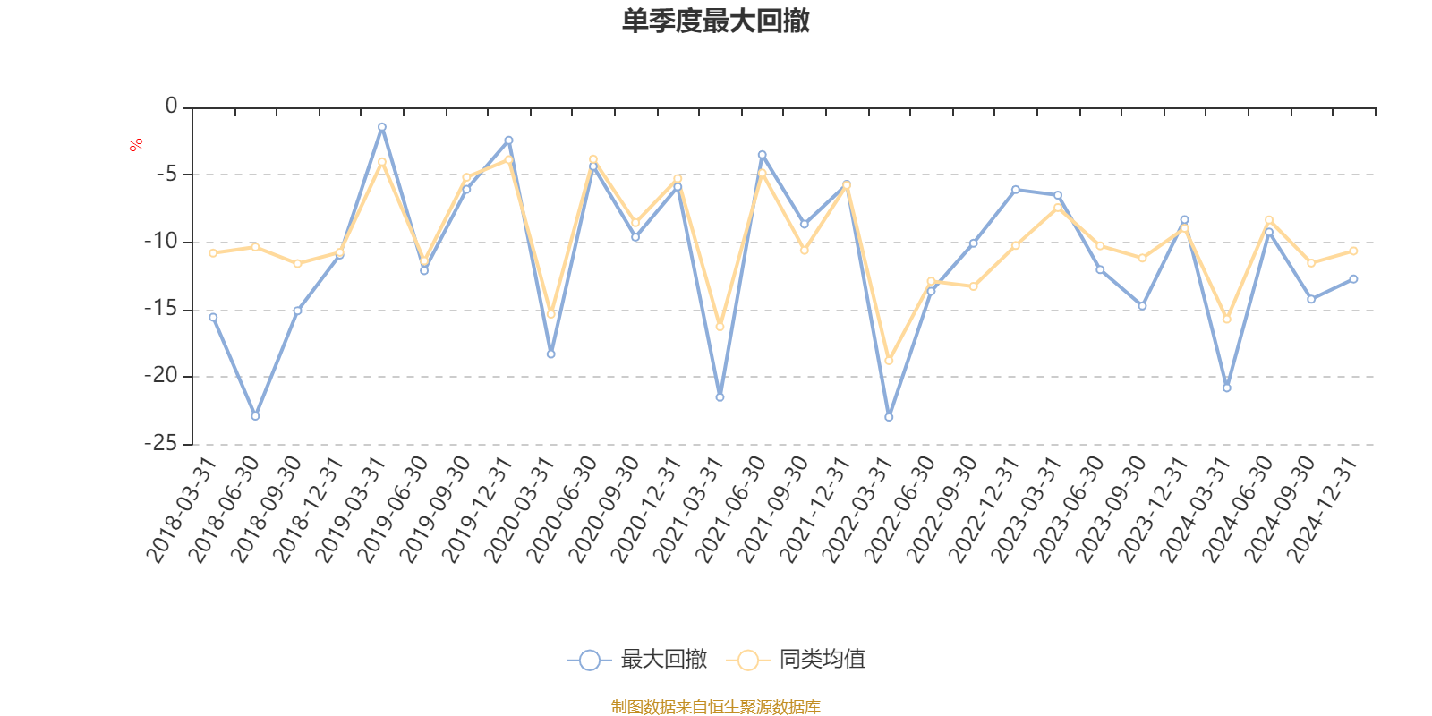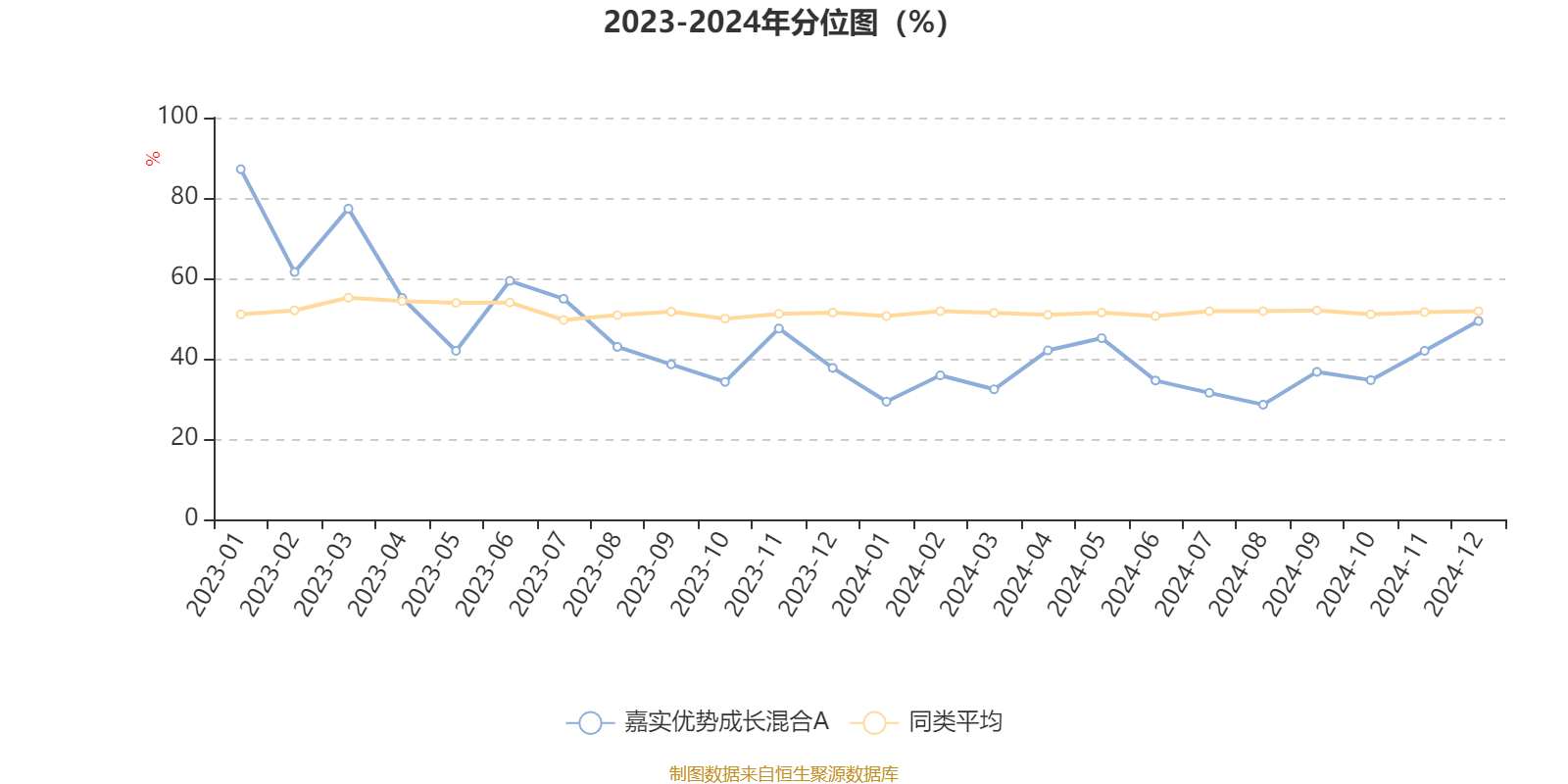 通过所选区间该基金净值增长率分位图,可以观察该基金与同类基金业绩比较情况。图为坐标原点到区间内某时点的净值增长率在同类基金中的分位数。