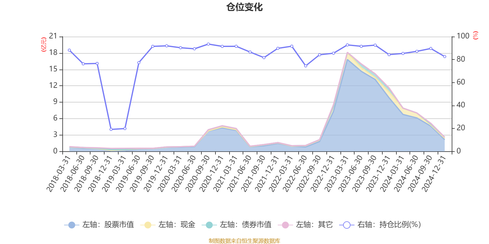 据定期报告数据统计,近三年平均股票仓位为86.82%,同类平均为79.9%。2020年三季度末基金达到93.49%的最高仓位,2018年末最低,为19.2%。