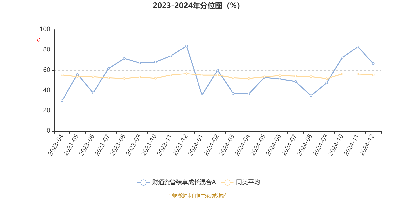 通过所选区间该基金净值增长率分位图,可以观察该基金与同类基金业绩比较情况。图为坐标原点到区间内某时点的净值增长率在同类基金中的分位数。