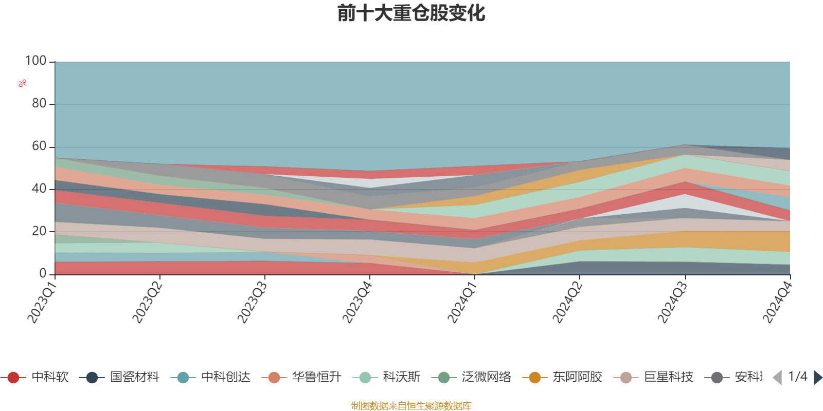 截至2024年四季度末,基金十大重仓股分别是东阿阿胶、杰瑞股份、欧圣电气、科沃斯、恒帅股份、米奥会展、马应龙、华测检测、巨星科技、国瓷材料。