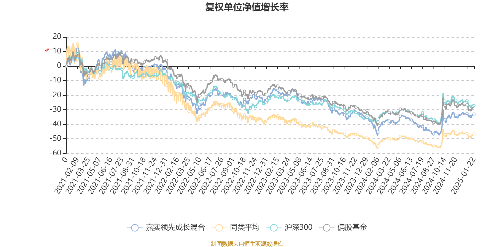 截至1月22日,嘉实领先成长混合近三个月复权单位净值增长率为3.81%,位于同类可比基金122/646;近半年复权单位净值增长率为15.24%,位于同类可比基金185/645;近一年复权单位净值增长率为18.00%,位于同类可比基金288/633;近三年复权单位净值增长率为-27.02%,位于同类可比基金245/447。