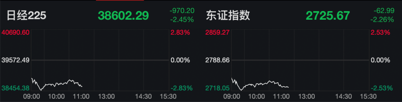 2月3日,日韩股市开盘大跌。截至发稿,日韩股市主要指数跌幅均超过2%。