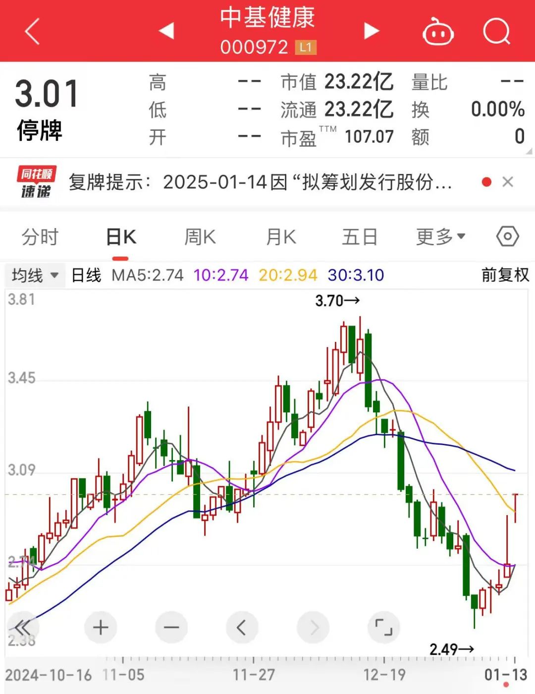 中基健康今日复牌