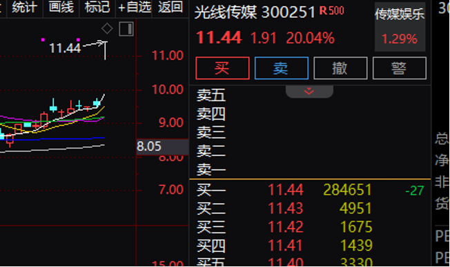 光线传媒为《哪吒之魔童闹海》的出品发行方,今日股价呈现“20cm”涨停。