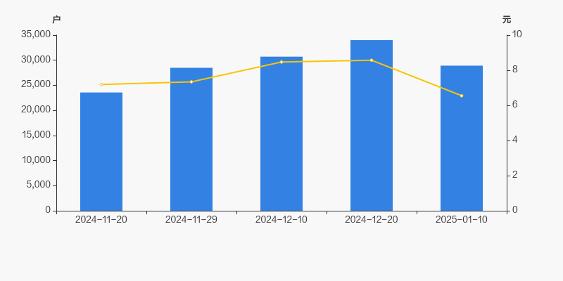 截至2025年1月10日,公司最新总股本为3.73亿股,其中流通股本为3.32亿股。户均持有流通股数量由上期的9772股上升至1.15万股,户均流通市值7.53万元。