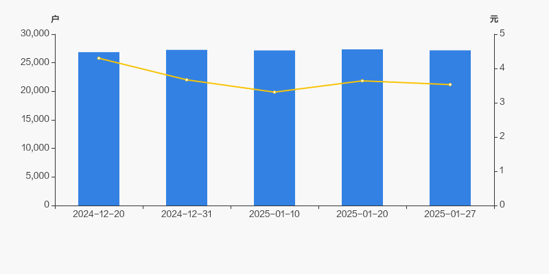 截至2025年1月27日,公司最新总股本为4.66亿股,其中流通股本为4.65亿股。户均持有流通股数量由上期的1.7万股上升至1.71万股,户均流通市值6.04万元。