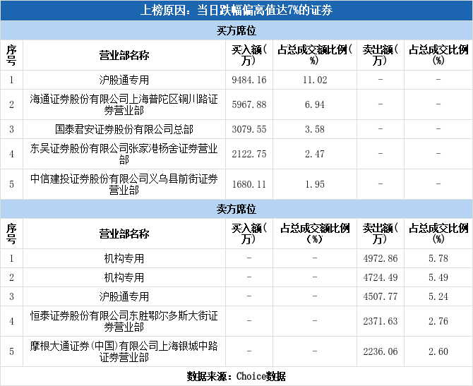 今日龙虎榜单上出现了沪股通的身影,占据了买一、卖三的位置,净买入4976.39万元,占当日成交总额的5.78%。