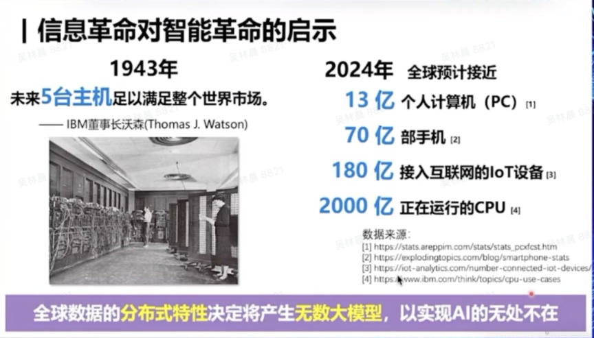 在过去的80年中,最初,一台计算机需要一个屋子才能装得下如今,每个人手边都有的手机、PC,以及各种计算设备都可以在非常小的设备上完成非常强大的计算能力。
