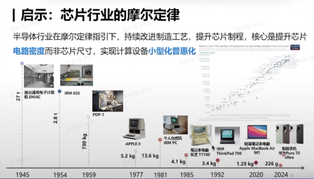 这一切都源于芯片行业在摩尔定律的指引下,不断推进芯片制程,提升芯片电路密度,从而实现计算设备的小型化和普惠化,推动算力的普及。这是我们追求高效性的内在需求。