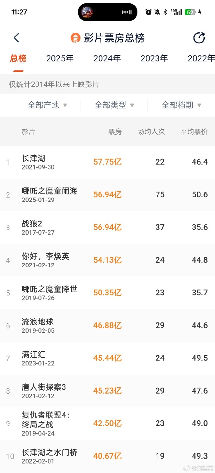 据灯塔专业版,截至2月6日11时27分,影片《哪吒之魔童闹海》票房突破56.95亿,超过《战狼2》进入中国影史票房榜前二。