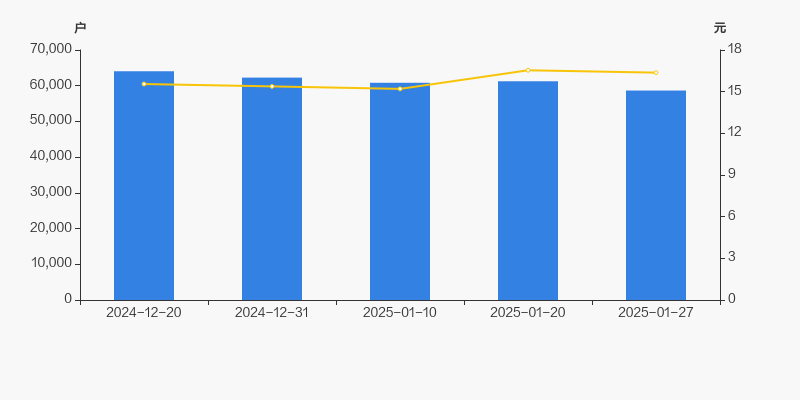 2024年12月20日至今,公司股东户数有所下降,区间跌幅为8.43%。2024年12月20日至2025年1月27日区间股价上涨5.27%。