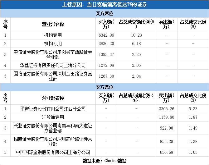 龙虎榜数据显示,今日共2个机构席位出现在龙虎榜单上,分别位列买一、买二。合计净买入1.02亿元。