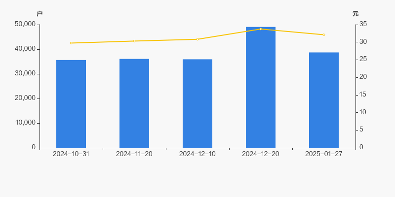2024年10月31日至今,公司股东户数有所增长,区间涨幅为8.66%。2024年10月31日至2025年1月27日区间股价上涨7.93%。