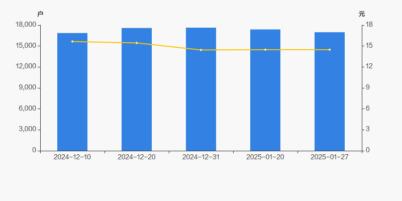 截至2025年1月27日,公司最新总股本为2亿股,其中流通股本为1.58亿股。户均持有流通股数量由上期的9114股上升至9327股,户均流通市值13.51万元。