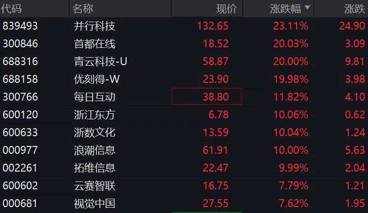 DeepSeek概念依旧火热,板块指数再度跳空高开高走大涨逾4%,优刻得、青云科技均连续第3日20%一字涨停,用友网络、梦网科技等逾10股涨停或涨超10%,其中并行科技、美格智能等多股创历史新高(复权)。