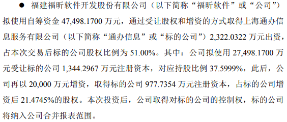 1月24日盘后,福昕软件(688095)公告称,公司拟使用自筹资金4.75亿元,通过受让股权和增资的方式取得通办信息51%的股份。交易完成后,通办信息将纳入公司并表范围。另外,交易公告显示,通办信息股东全部权益账面价值为1.34亿元,最终评估值为7.31亿元,增值5.98亿元,增值率为447.13%。