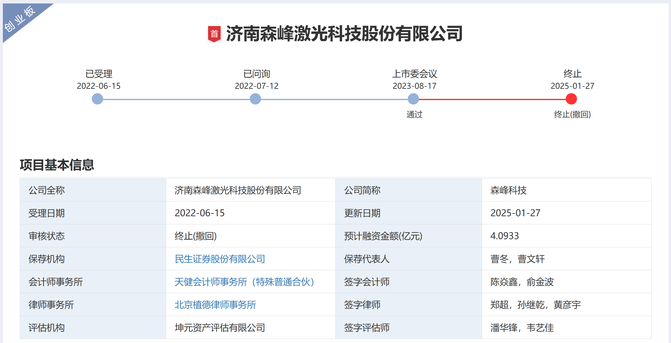 上述29家终止IPO公司中,13家公司此前已首发过会,分别为创业板的森峰科技、大汉软件、六合宁远、明美新能、元丰电控、凝思软件、数智交院、沃文特和英科新创,北交所的图南电子和飞宇科技,沪深主板的高泰电子和宏业基。其中,数智交院、沃文特和英科新创的过会时间还要追溯至2022年。