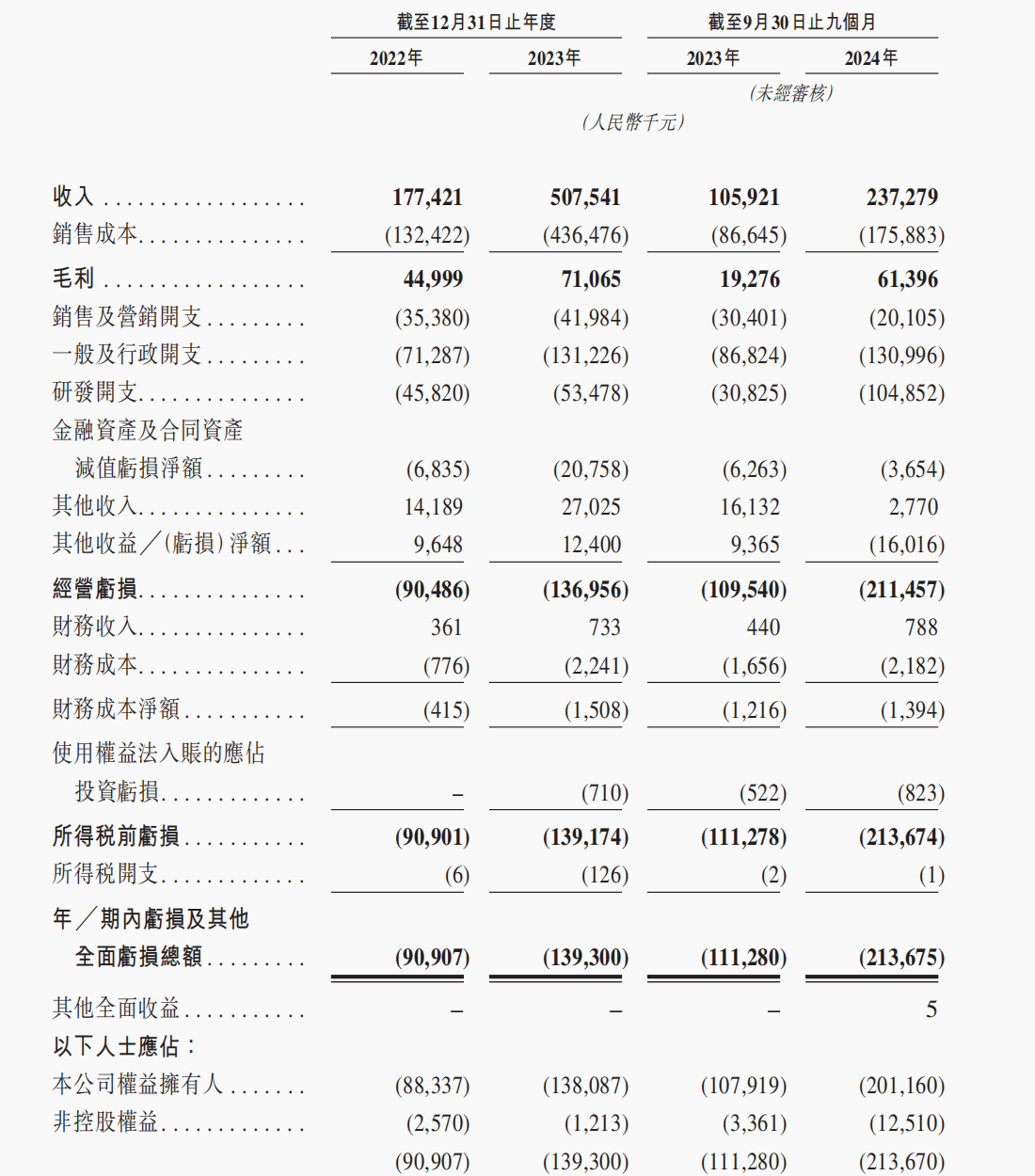 招股书显示,2022年至2024年前三季度各期期末,国星宇航的营业收入分别为1.77亿元、5.08亿元、2.37亿元,净亏损分别为9090.7万元、1.39亿元、2.14亿元。不到三年的时间里亏损超4亿元,且亏损幅度逐年持续扩大。