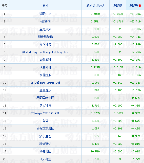 其他中概股涨跌情况,上涨股当中,拼多多涨1.38%,网易涨0.94%,京东涨0.40%,携程涨1.01%,百度涨0.57%,理想汽车涨4.86%,日月光半导体涨0.10%,贝壳涨0.34%,腾讯音乐涨3.89%,中通涨0.68%,富途控股涨8.73%,满帮涨2.61%,华住酒店集团涨3.40%,蔚来涨0.95%,WSP控股涨0.77%,新东方涨0.17%,哔哩哔哩涨2.49%,名创优品涨1.14%,BOSS直聘涨4.40%,360数科涨1.15%,万国数据涨2.73%,小马智行涨6.14%,文远知行涨0.06%。下跌股当中,台积电跌2.08%,中华电信跌0.36%,小鹏汽车跌0.99%,联电跌0.17%,中国新城农村跌2.67%,唯品会跌1.64%,极氪跌1.78%,金山云跌2.64%。