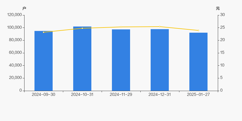 2024年9月30日至今,公司股东户数有所下降,区间跌幅为2.88%。2024年9月30日至2025年1月27日区间股价上涨3.15%。