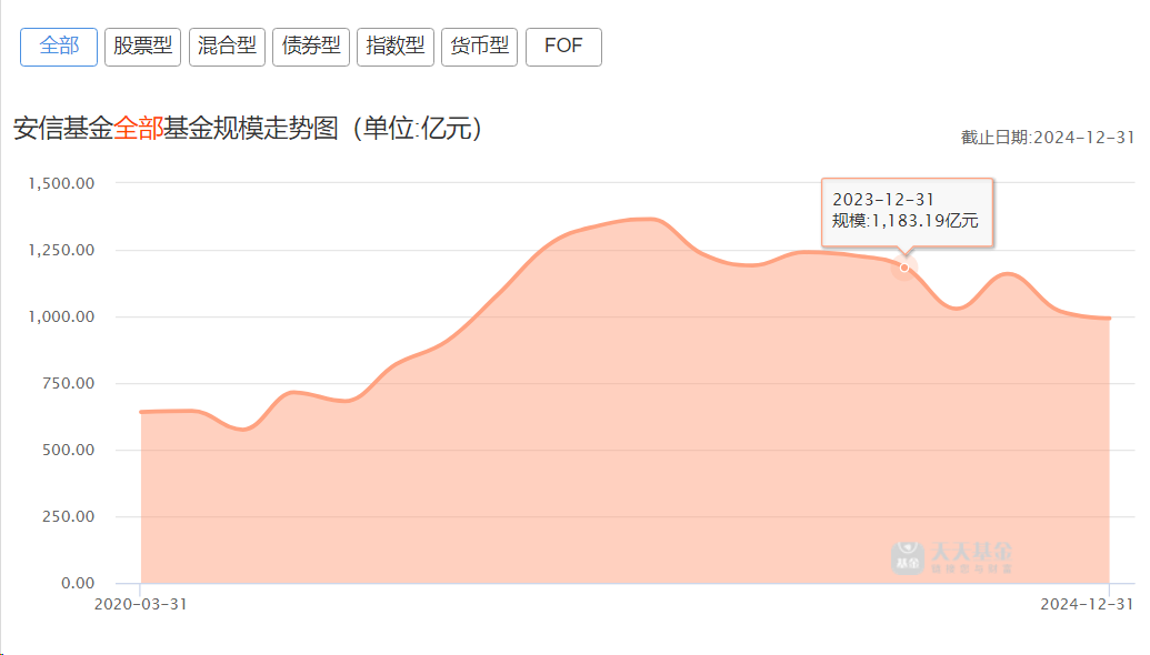 安信基金管理规模跌出千亿梯队