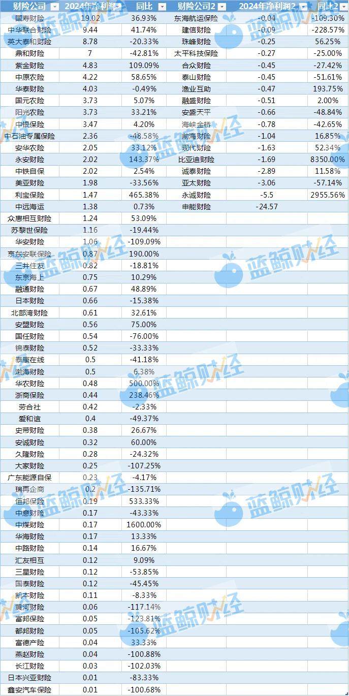 (非上市财险公司2024年净利润,单位:亿元;制表:蓝鲸新闻)