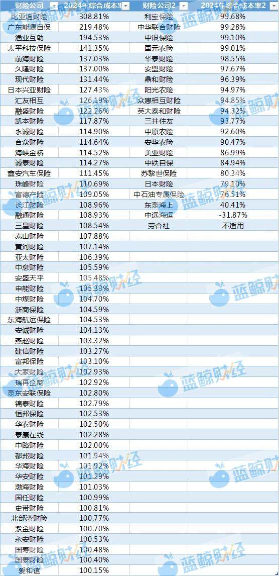 (非上市财险公司2024年综合成本率;制表:蓝鲸新闻)