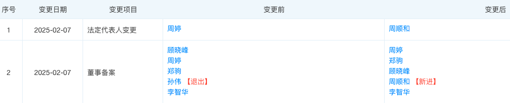 天眼查显示,2月7日,杉杉控股有限公司发生工商变更,创始人郑永刚遗孀周婷卸任董事长、法定代表人,职务变更为董事,周顺和接任法定代表人并担任董事长,孙伟卸任董事职务。据悉,周顺和系周婷直系亲属。