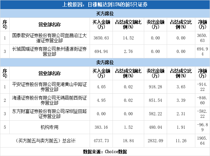 龙虎榜数据显示,今日卖五为机构席位,该席位净卖出96.89万元,占该股今日总成交额的0.39%。