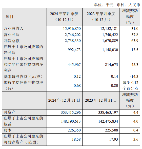 数据显示,2024年度未经审计的营业收入为577.96亿元,同比增加27.7%。2024年度未经审计的归属于上市公司股东的净利润为人民币36.99亿元,同比下降23.3%,主要是由于资金收益下降所致。