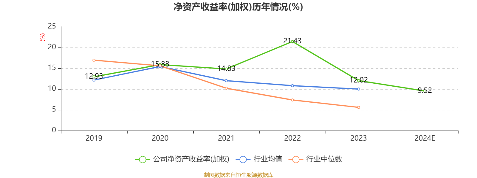 数据显示,2024年公司加权平均净资产收益率为9.52%,较上年同期下降2.5个百分点。