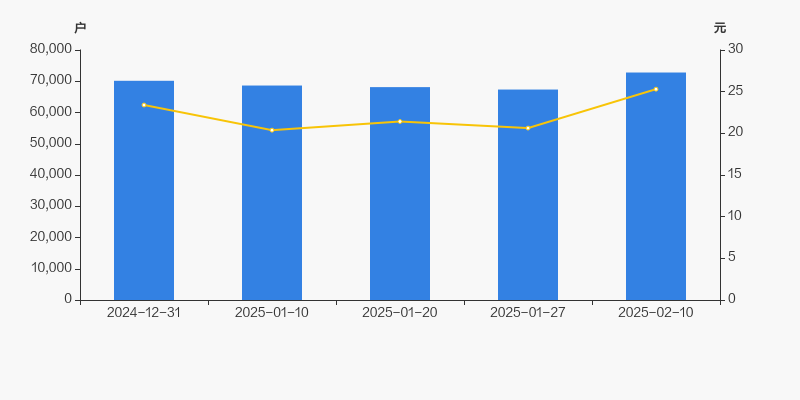 截至2025年2月10日,公司最新总股本为7.2亿股,其中流通股本为6.98亿股。户均持有流通股数量由上期的1.04万股下降至9591股,户均流通市值24.27万元。