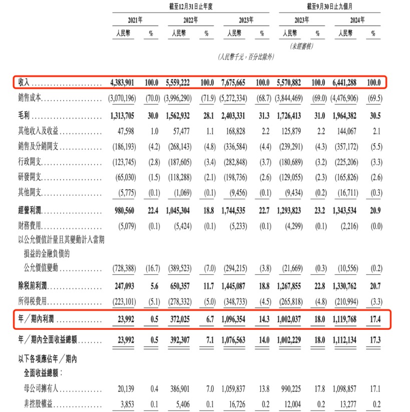 2021年至2023年毛利率分别为30%、28.1%、31.3%,2024年前三季度毛利率为30.5%。2022年毛利率降低主要是由于降低向加盟商供应的若干商品价格,以支持疫情期间的营运。