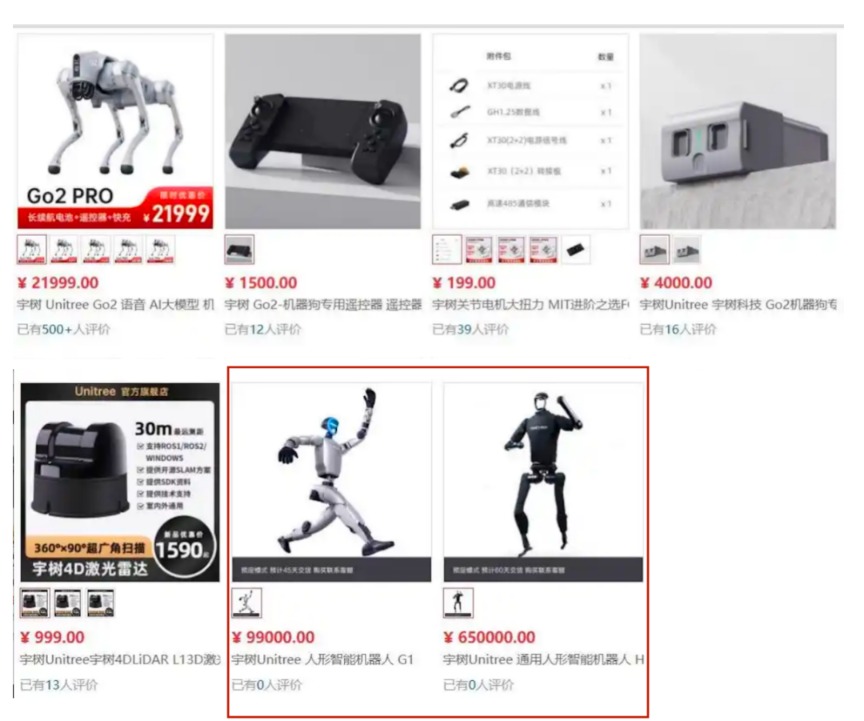 2月12日,不少网友发现,宇树科技的Unitree H1和G1人形机器人已正式在京东线上开启预售。