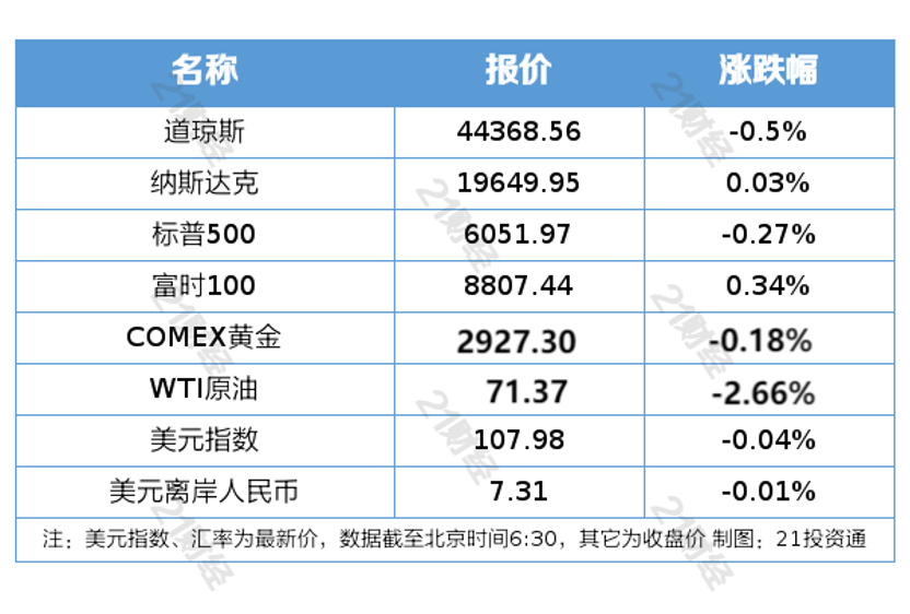 隔夜外盘